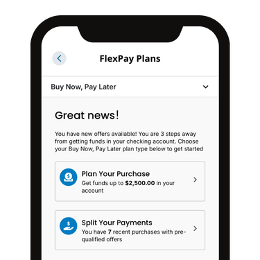 - Built-In Accessibility: We’ve made your personalized, pre-qualified FlexPay offers visible within the PFCU mobile app 24/7. This allows you to see your options and make informed decisions before you spend, day or night.